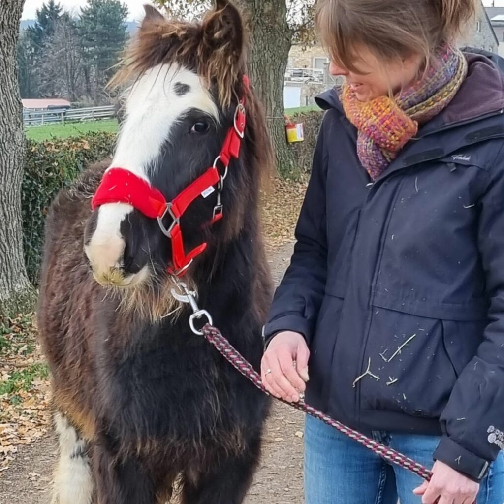 Cette reconnexion me rappelle à quel point les chevaux ont un puissant pouvoir de guérison et qu’ils sont essentiels à mon équilibre. J’entreprends alors de ramener Flicka près de moi et de ma famille. Et pour ouvrir un nouveau chapitre, je décide d’adopter un jeune poulain. C’est ainsi qu’en 2023, Eros – un Tinker noir et blanc avec un cœur dessiné sur le front – rejoint notre famille. L’accueillir est un vrai défi, une grande leçon de vie. Cela m’oblige à dépasser mes peurs, et aussi celles que l’on projette sur moi. C’est un acte fort de confiance en moi, en mes projets, et en la voie que je choisis de suivre avec les chevaux.